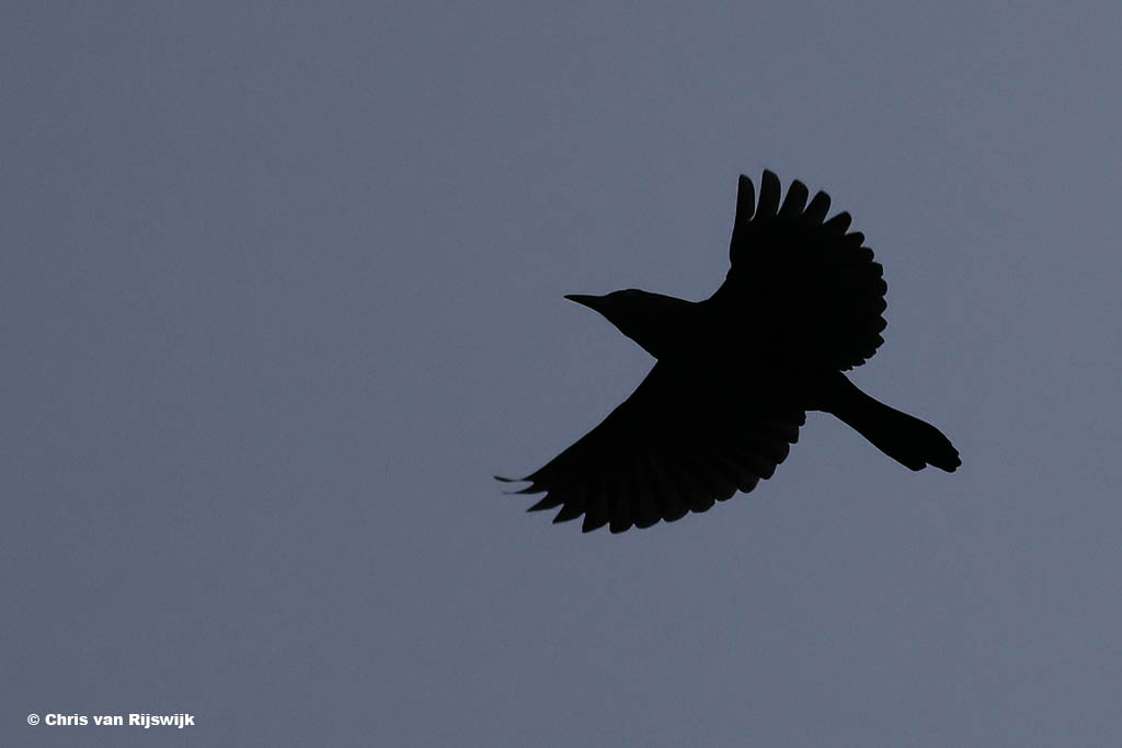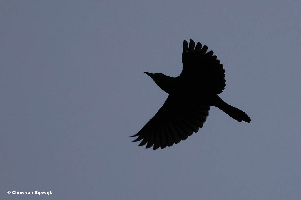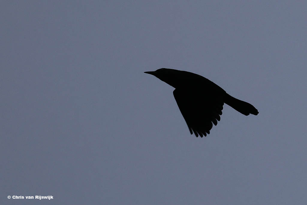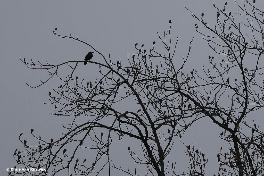 Ik ben toevallig vrij en fiets door het Rottemerengebied als de melding doorkomt. Ik ga even naar huis om mijn waadpak uit te doen en fiets door naar Capelle aan den IJssel. Daar vind ik de vogel bij aankomst terug op het dak van Rijndal 44.